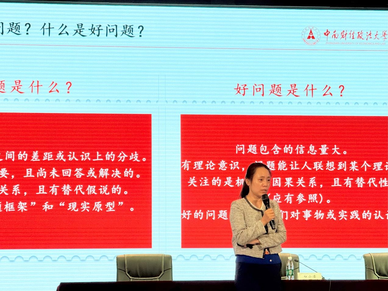 随后,白老师详细讲解了如何走好做研究的第一步。她强调,好的研究问题是学术研究的核心,提出问题时要具备现实敏感性和因果性思考的能力。白老师还介绍了如何从已有的文献中识别问题和差距,并从中提出创新性的研究问题。